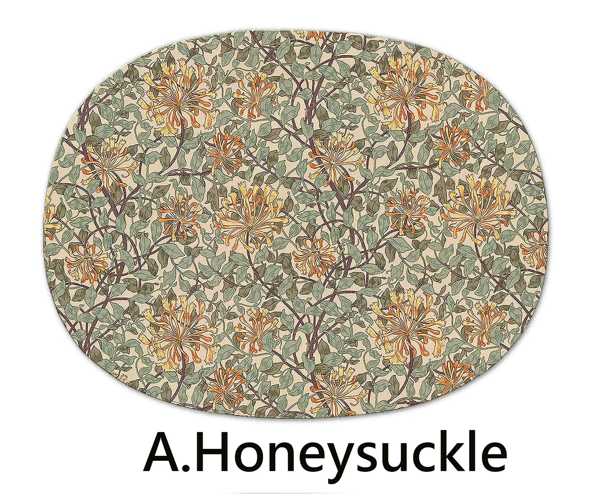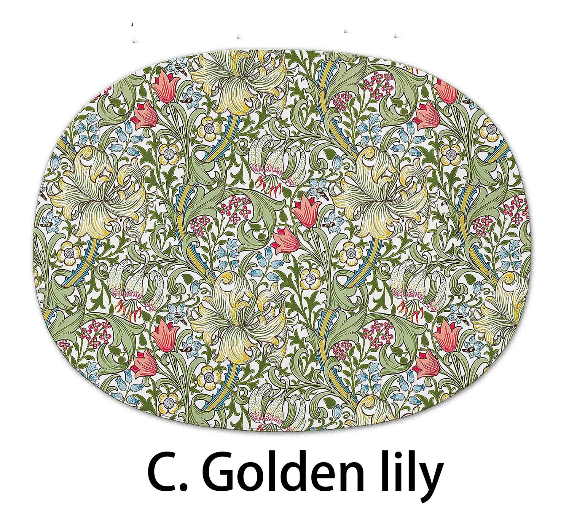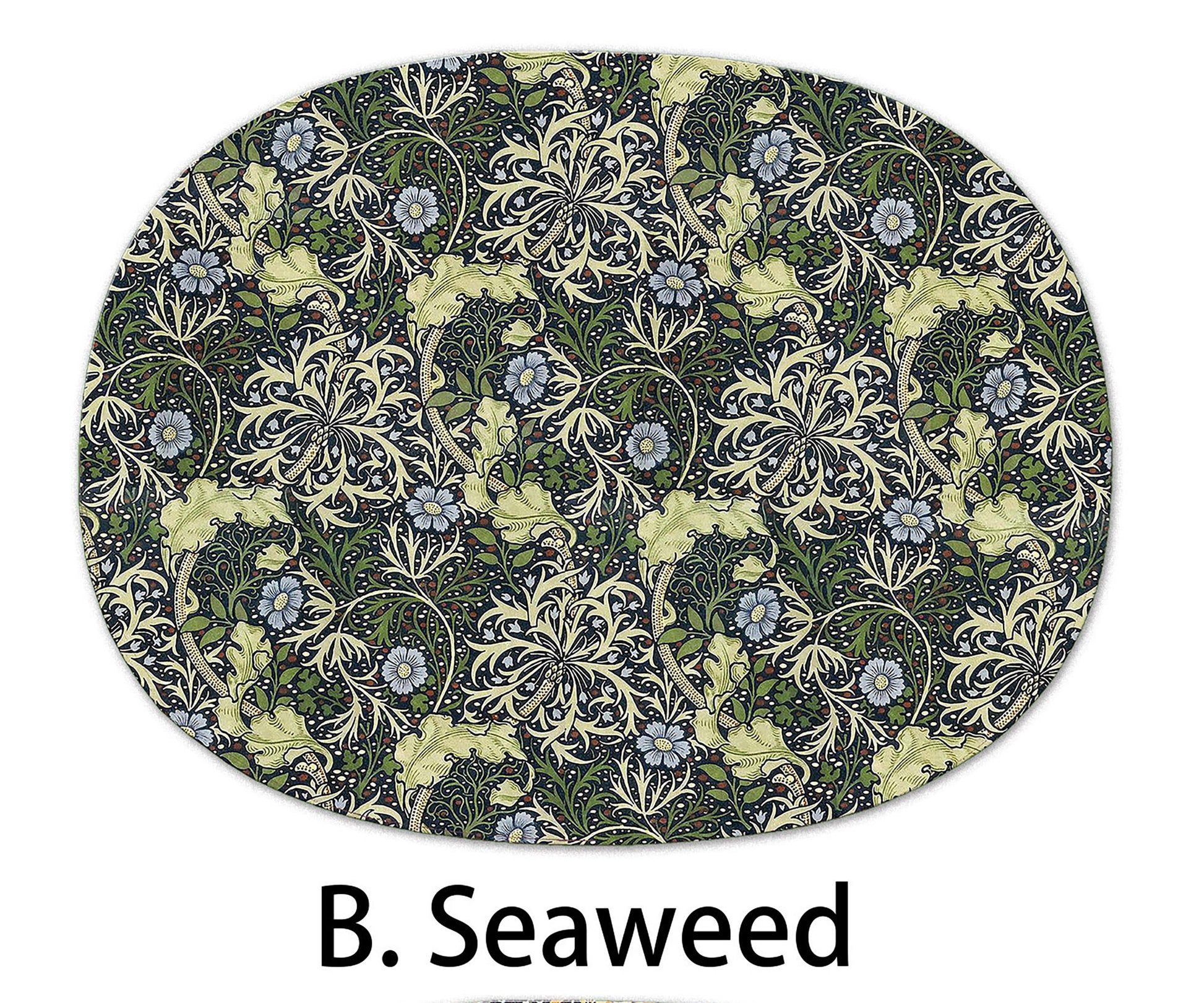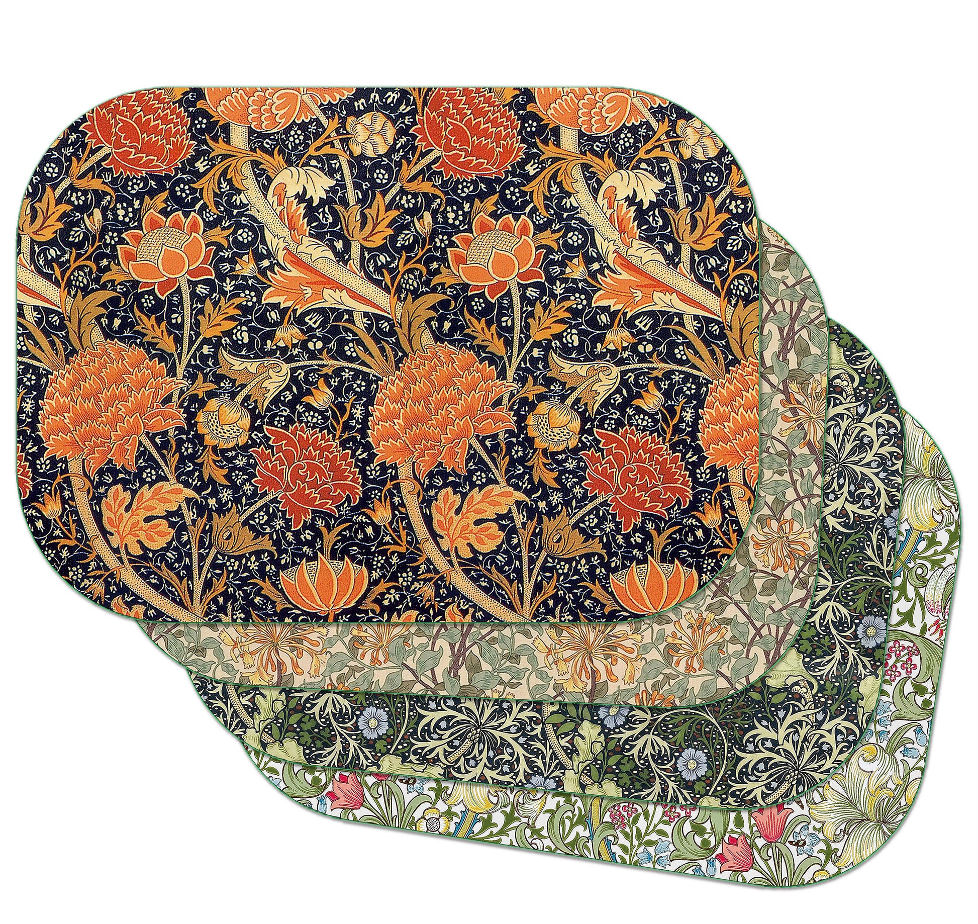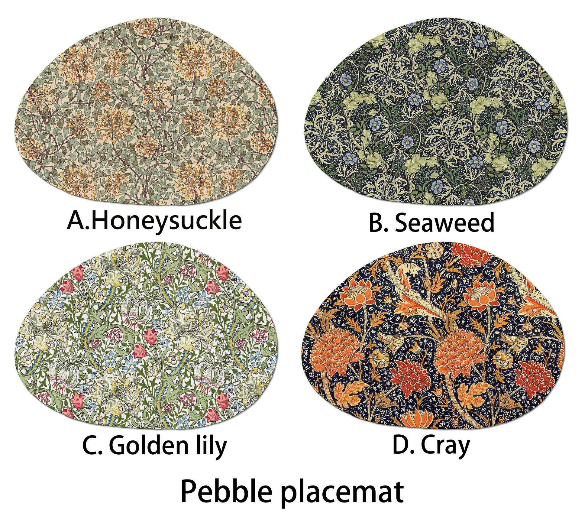 The Art Nouveau Placemat in William Morris design features a tactile basket texture with turned edges, adding a touch of history and unicorns to your table setting. Handmade and made to order, these rectangular placemats are crafted from durable polyethylene, vinyl, and PVC materials, making them waterproof and stain resistant for easy care. The multicolor design and unique features make them a perfect addition to your kitchen or dining room, suitable for various occasions and adding a touch of custom-made charm to your home decor.